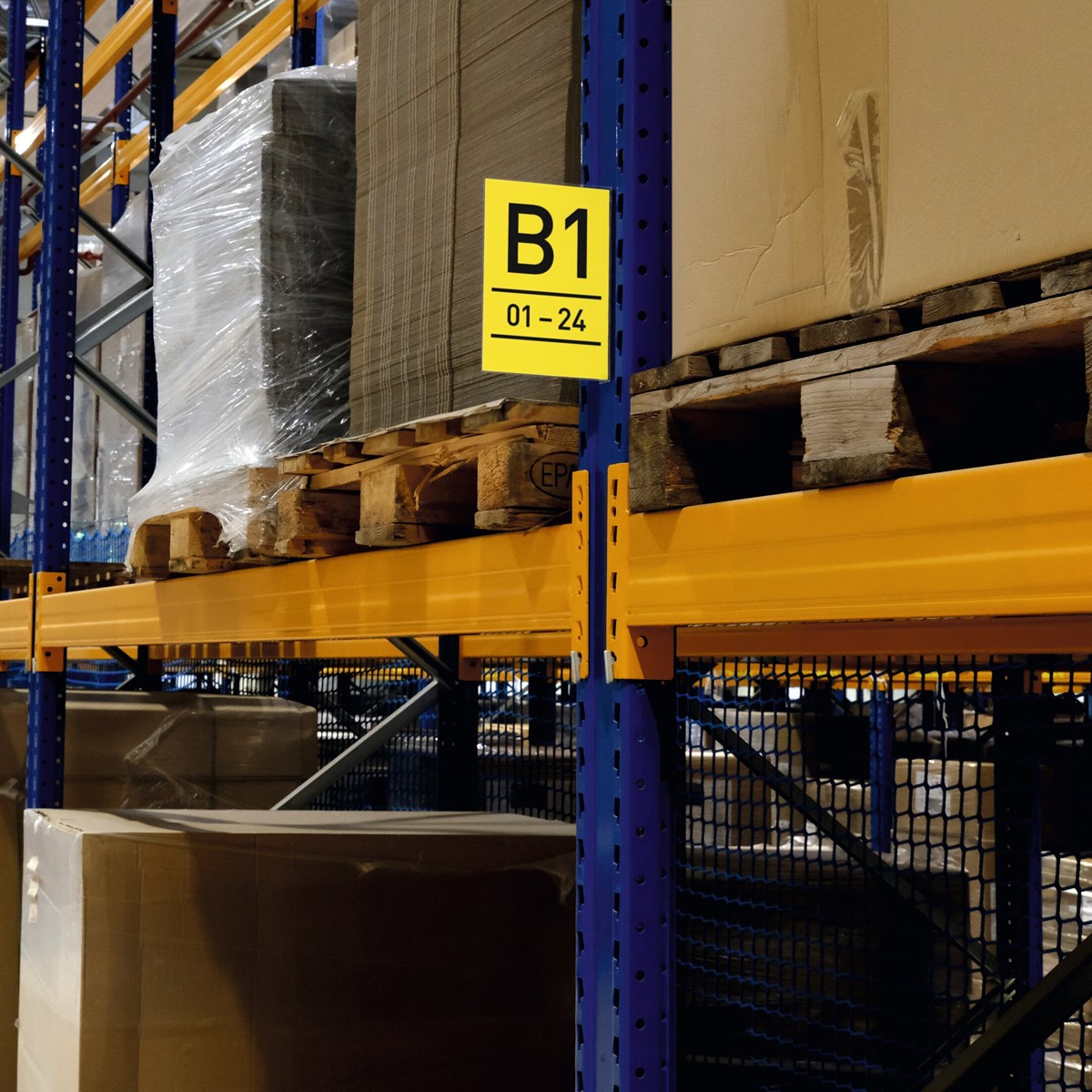 Tydliga och väl synliga gångskyltar för märkning av pallgångar, hyllsektioner, lagerkontor, toaletter m.m gör det överskådligt och lätt att hitta på ett lager eller i en produktionsanläggning.
