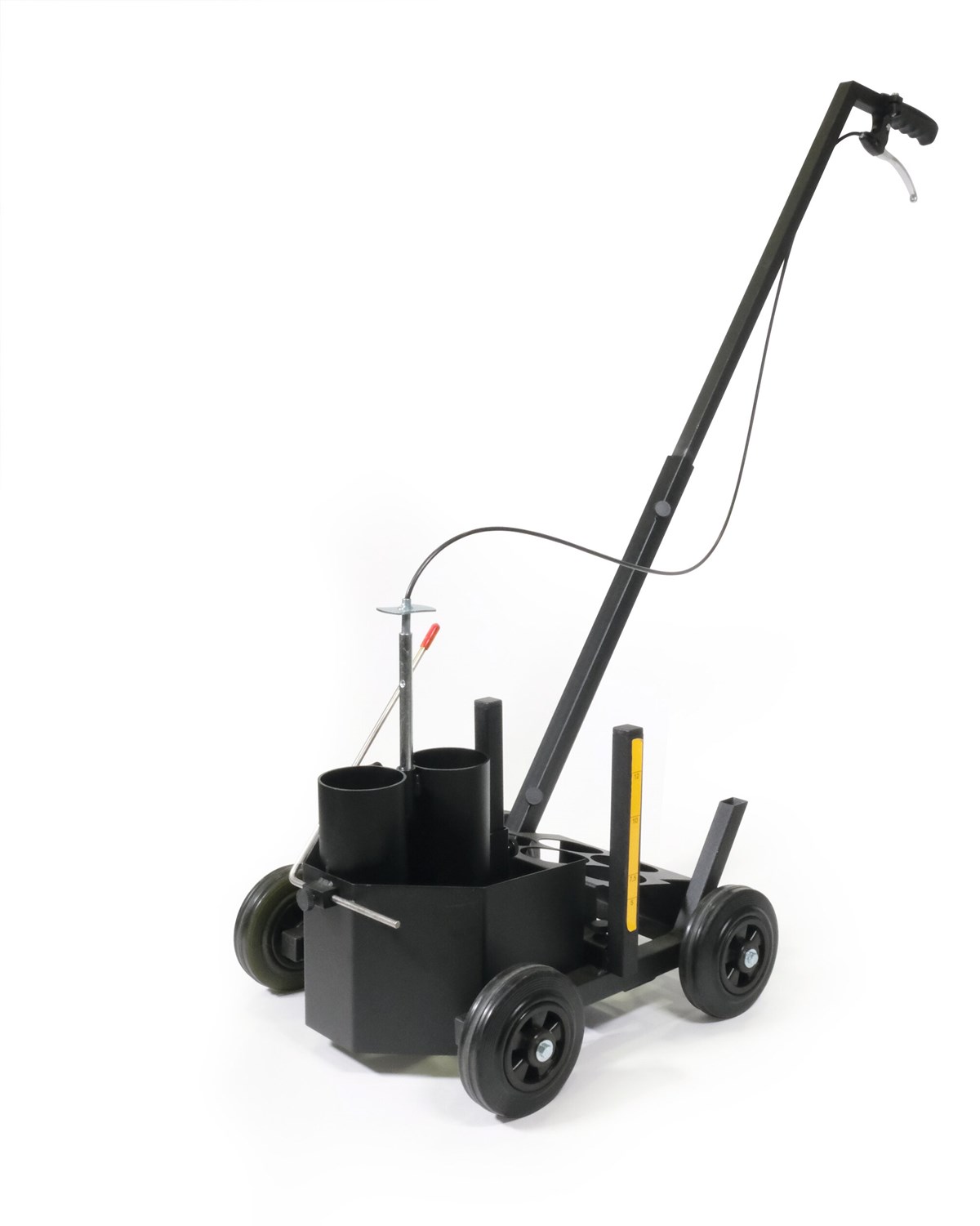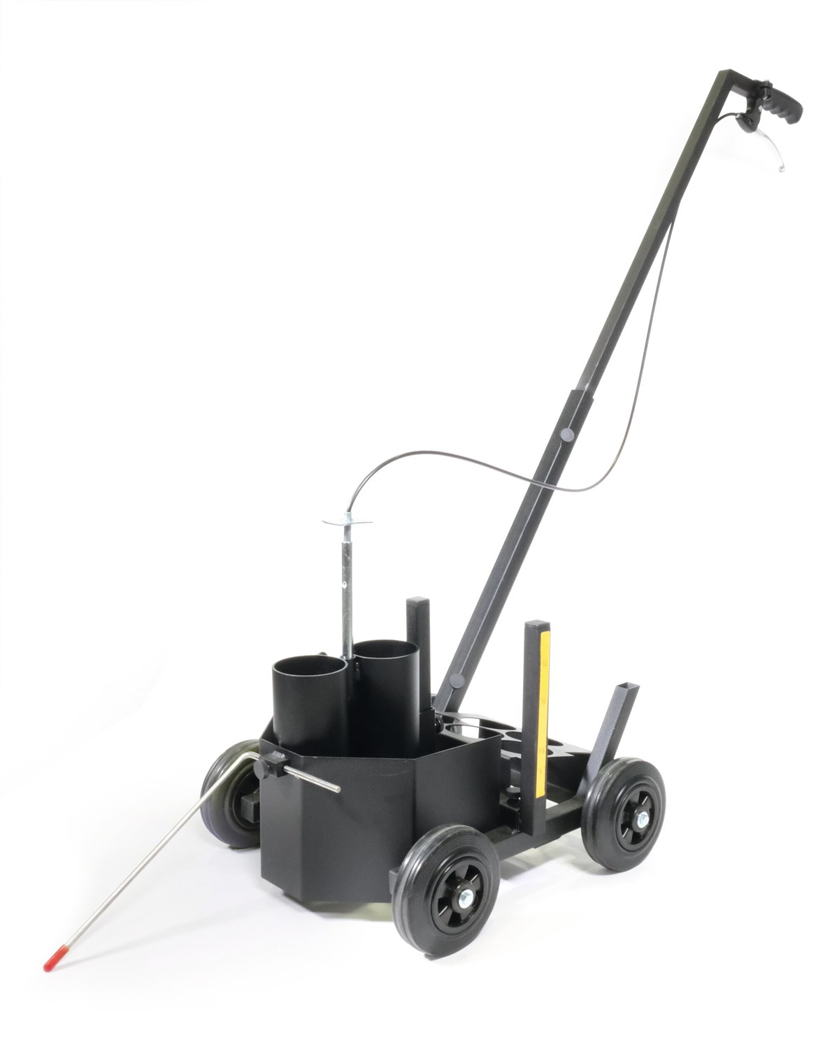 Vagnen, som är av metall, har höjdjusterbart handtag som kan anpassas för både höger- och vänsterhänta, vilket ger god ergonomi. Fyra hjul samt riktningspil, som kan fällas ner för att följa förmarkerade linjer, ger spikraka linjer. Steglös justering av linjebredden från 4 till 10 cm ger full flexibilitet att anpassa linjemålningen efter behov.
