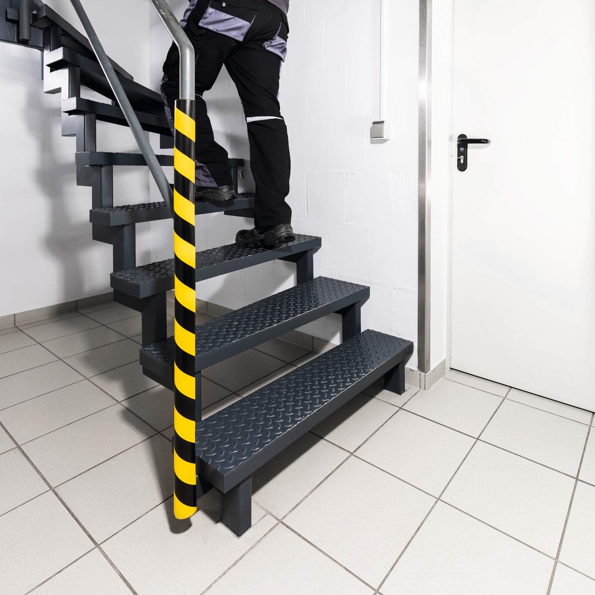 Varnings- och skyddsprofiler som detta rörskydd används inom industrier och andra inomhusmiljöer för att skydda personer, fordon och inredning vid lättare sammanstötningar.