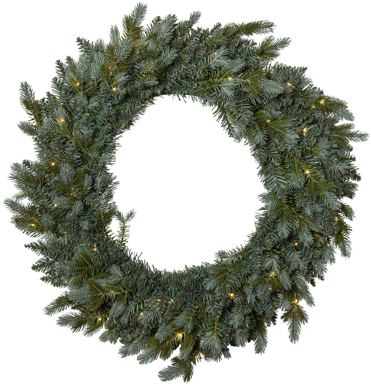 Kransen Greyland är ca 80 cm i diameter. Vackert grågrönt skimrande utseende. Med 60 små varmvita ljuspunkter lyser den upp vackert både inomhus och utomhus. Slingan kan både lysa konstant eller sättas med timer som lyser upp i 6 timmar och är släckt 18 timmar för att sedan tändas igen nästa dag. Den drivs av 3 st AA-batterier (medföljer ej).