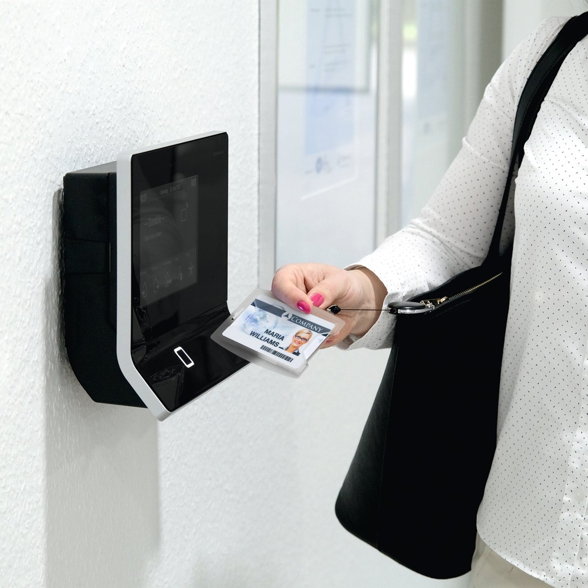 Ett bra val för en organisation som vill minska sin miljöpåverkan! Denna korthållare av 70% återvunnen polypropylen har en täckt framsida som skyddar kortet och en materialbesparande baksida. Tumgrepp gör det lätt att ta ut korten. Tåligt material som som klarar daglig användning utan att hållaren spricker. Kombinera med nyckelband, jojo eller clips. Kan användas i liggande eller stående format. För standardkort ca 54x85 mm.