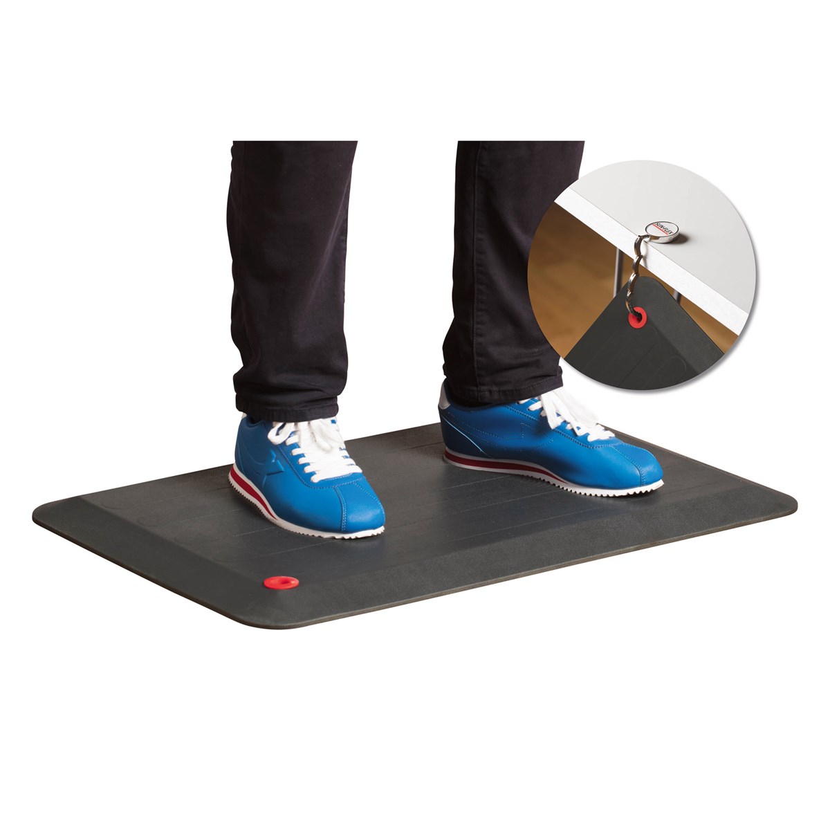 Den balanserande och väl avvägda mjukheten i mattan möjliggör för de viktiga mikrorörelserna. Mikrorörelserna stimulerar till ökad blodcirkulation och motverkar trötthet, ömhet och allmänt obehag. Mönstrad yta med material som har antimikrobiska egenskaper. 100% fri från PVC och ftalater. Öljett för upphängning. Mått: 71 x 53 x 2,4 cm.