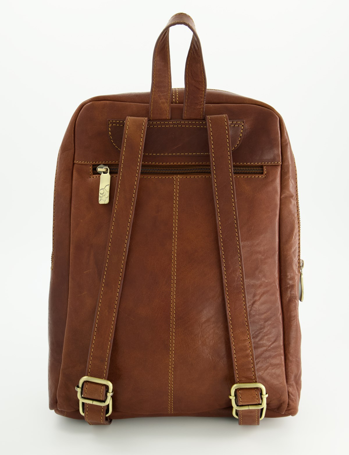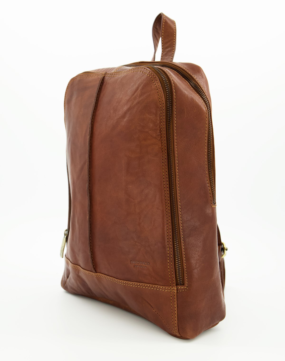 En mindre men mycket användbar ryggsäck i skinn med justerbara bärremmar. På toppen finns två fack med dragkedja varav det bakre är vadderat och avsett som datorfack. Rymmer dator upp till 13". Mått: 28 x 36 x 11 cm.