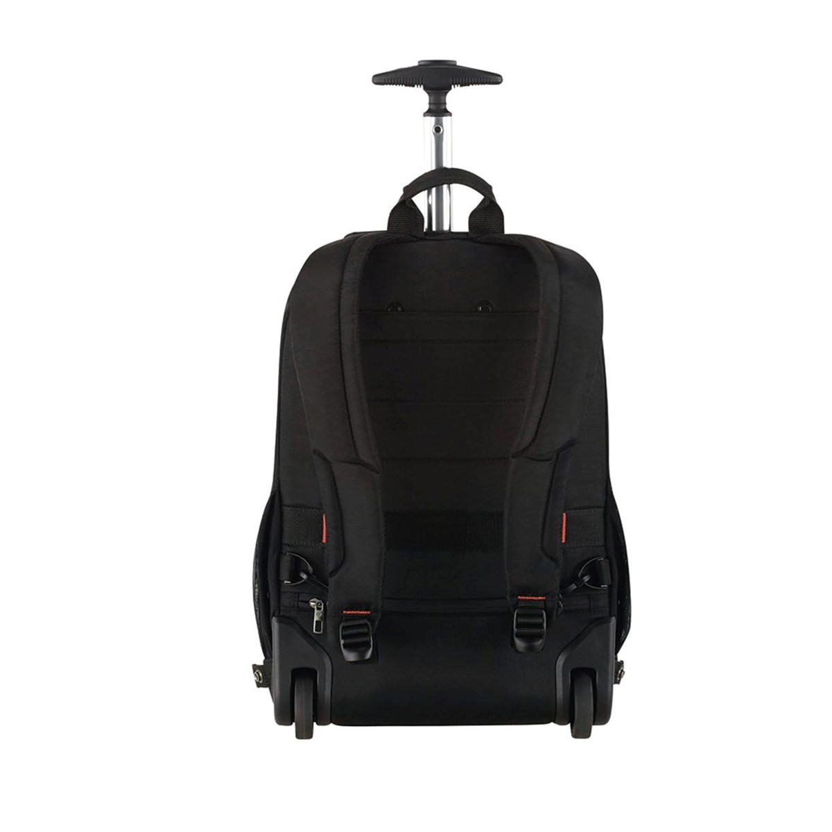 Fungerar både som datorryggsäck och datorväska med hjul och draghandtag. Fack för 15,6" bärbar dator och en surfplatta. Har även utrymme för ett klädbyte. Mjukt vadderade bärremmar och bärhandtag. Mått: 48 x 33,5 x 20 cm. Svart polyester.