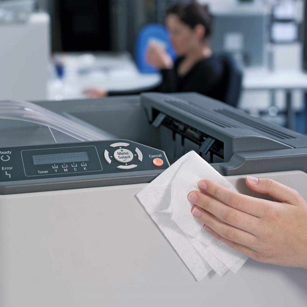 Luddfria våtdukar för rengöring av plastytor som t.ex. utsidor och höljen på datorer, skrivare, telefoner och andra kontorsmaskiner. Dukarna är biologiskt nedbrytbara och har antistatisk effekt. 100 dukar/burk.