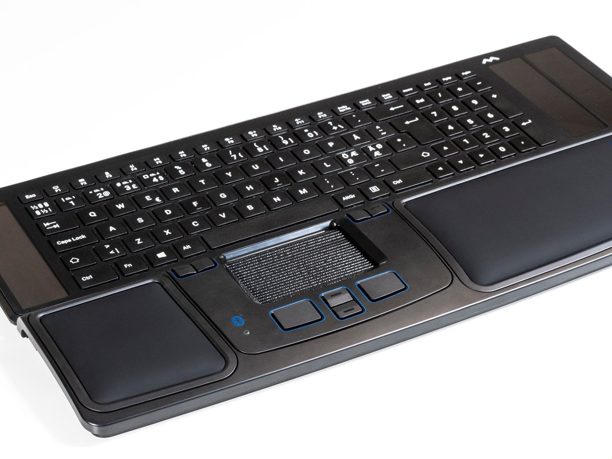 - Supertunn ergonomisk design - Styrmatta med klickfunktion och scrollfunktion - Möjlighet att arbeta trådlöst via Bluetooth - 8 programmerbara knappar för anpassning till eget behov via MT Keys - Handlovstöden kan hållas rena med ytdesinfektionsmedel - Utbytbara handlovstöd - Justerbar höjdanpassning med vikbart friktionsbelägg - Batteritid innan uppladdning är 4 månader - Uppladdningsbart batteri - 2000 dpi - Bluetooth 4.1 - Mått: 480 x 20 x 110 mm