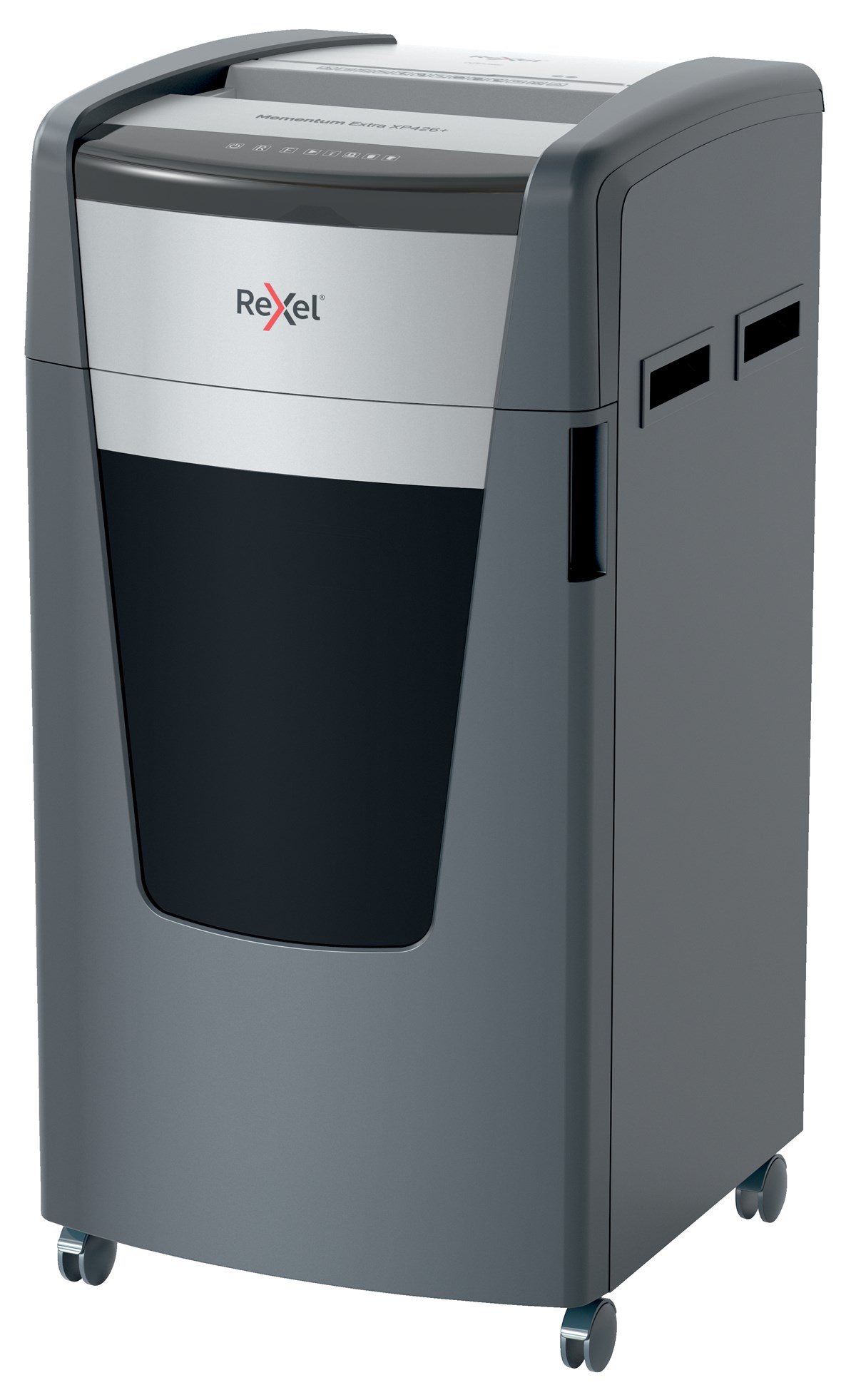 När makuleringsbehovet är stort eller bredd. Inmatningsbredd 310 mm. 55 dBA. Strimlar häftklammer, gem, plastkort och cd/dvd. JamFree-teknik förhindrar pappersstopp. Makulerar upp till 26 ark på en gång genom det manuella inmatningsfacket. Säkerhetsklass: P4 4x30 mm. Volym: 120 liter. Vi rekommenderar att man använder oljeark var tredje gång man tömmer dokumentförstörarens avfallsbehållare.