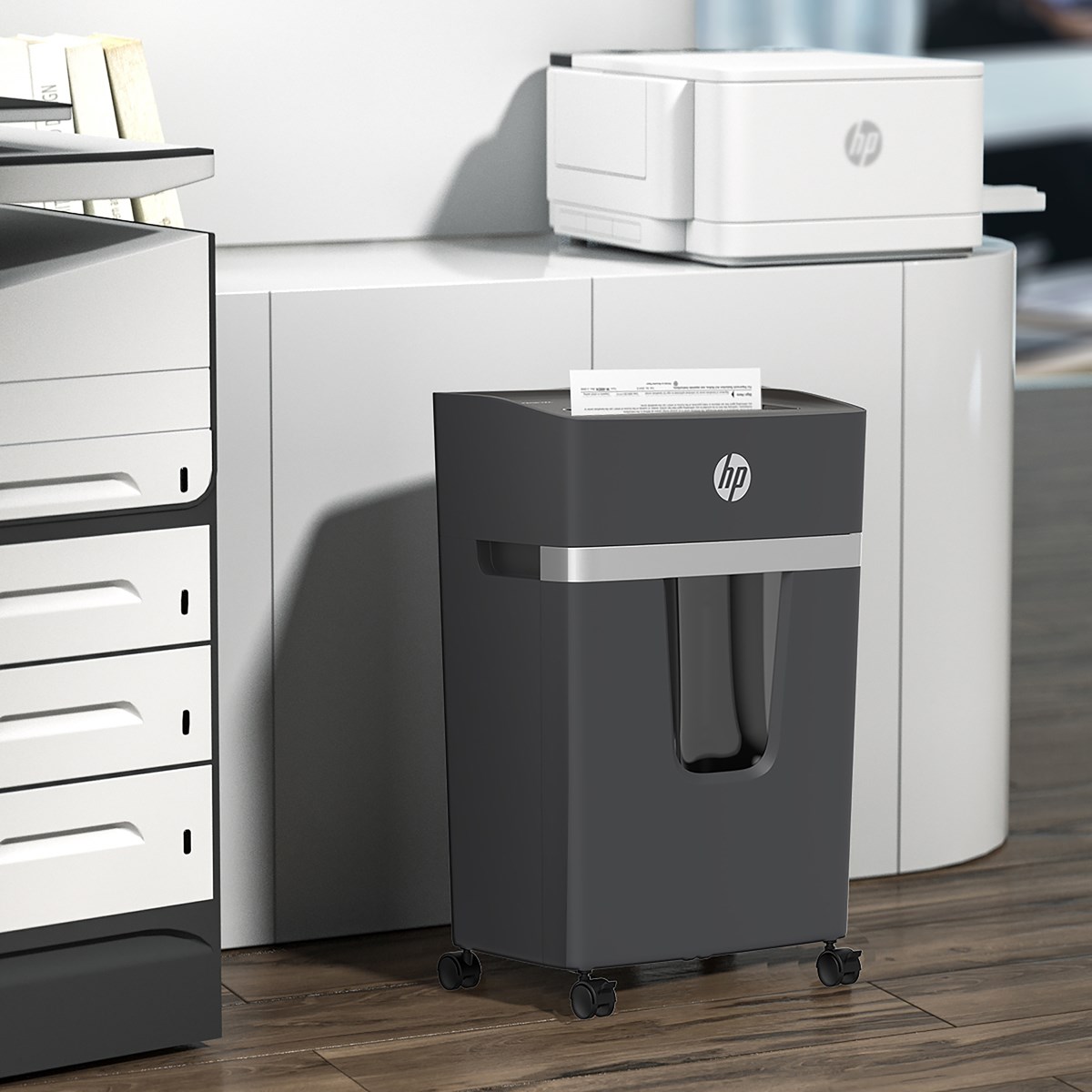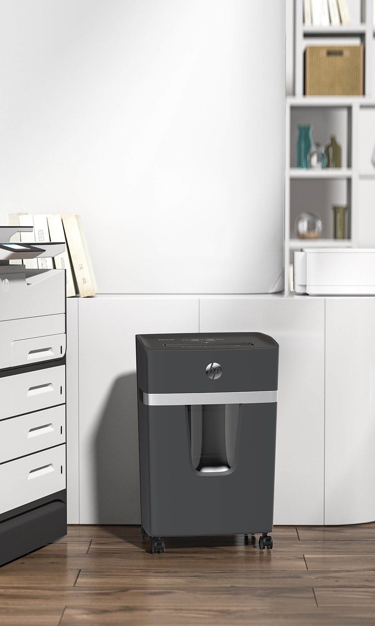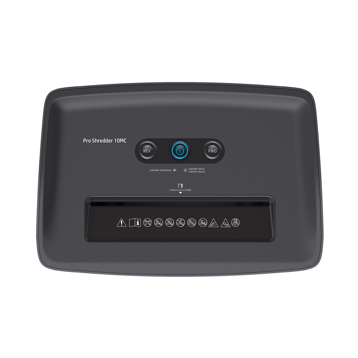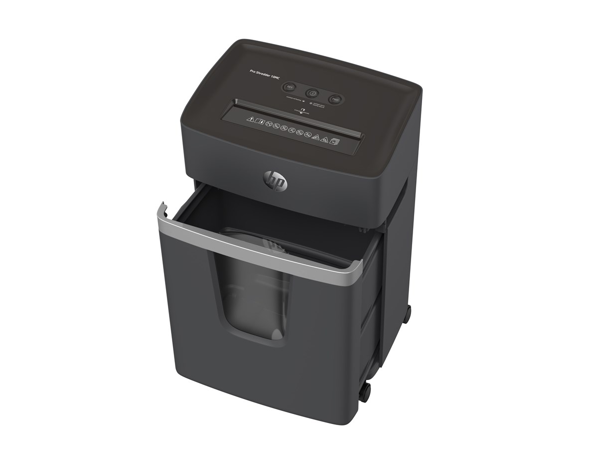 Pålitlig dokumentförstörare som tar liten plats på ditt kontorsrum eller på hemmakontoret. Makulerar upp till 10 A4-ark. Stoppar och matar tillbaka papperet för att undvika pappersstopp om du matar i för många ark per gång. Överbelastnings- och överhettningsindikator. Genom det stora fönstret ser du enkelt när tömning behövs. Volym: 20 liter. Strimlar kreditkort, gem eller häftklammer. Partikelstorlek: 2 mm x 15 mm, Skärhastighet: 1,6 meter per minut. Säkerhetsnivå: P-5/DIN 66399. Användningsområde: liten kontorsmiljö. Driftstid: 20 minuter. Mått: 354x240x535 mm.