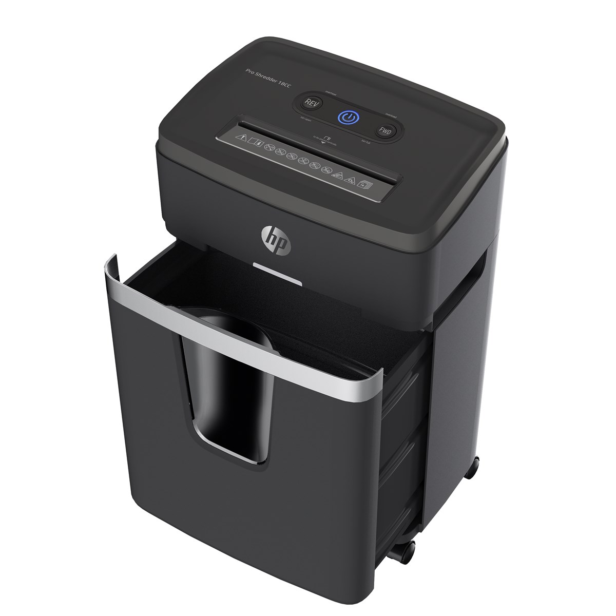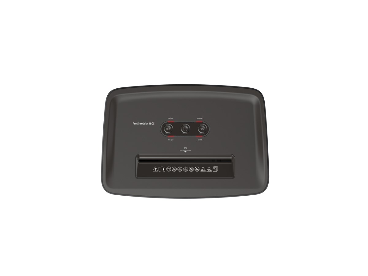 Pålitlig dokumentförstörare som tar liten plats på ditt kontorsrum eller på hemmakontoret. Makulerar upp till 18 A4-ark. Stoppar och matar tillbaka papperet för att undvika pappersstopp om du matar i för många ark per gång. Överbelastnings- och överhettningsindikator. Genom det stora fönstret ser du enkelt när tömning behövs. Volym: 25 liter. Strimlar kreditkort, gem eller häftklammer. Partikelstorlek: 4 mm x 35 mm, Skärhastighet: 1,6 meter per minut. Säkerhetsnivå: P-4/DIN 66399. Användningsområde: liten kontorsmiljö. Driftstid: 20 minuter. 400x272x592 mm.