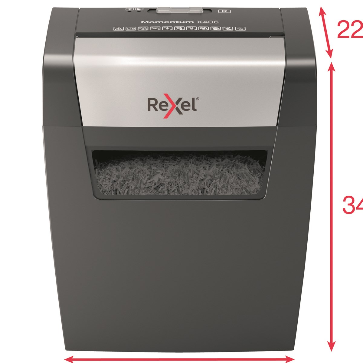 Liten men kraftfull korsstrimlande dokumentförstörare för hemmabruk. Strimlar häftklammer och gem. 229x343x325 mm. Vi rekommenderar att man använder oljeark var tredje gång man tömmer dokumentförstörarens avfallsbehållare.