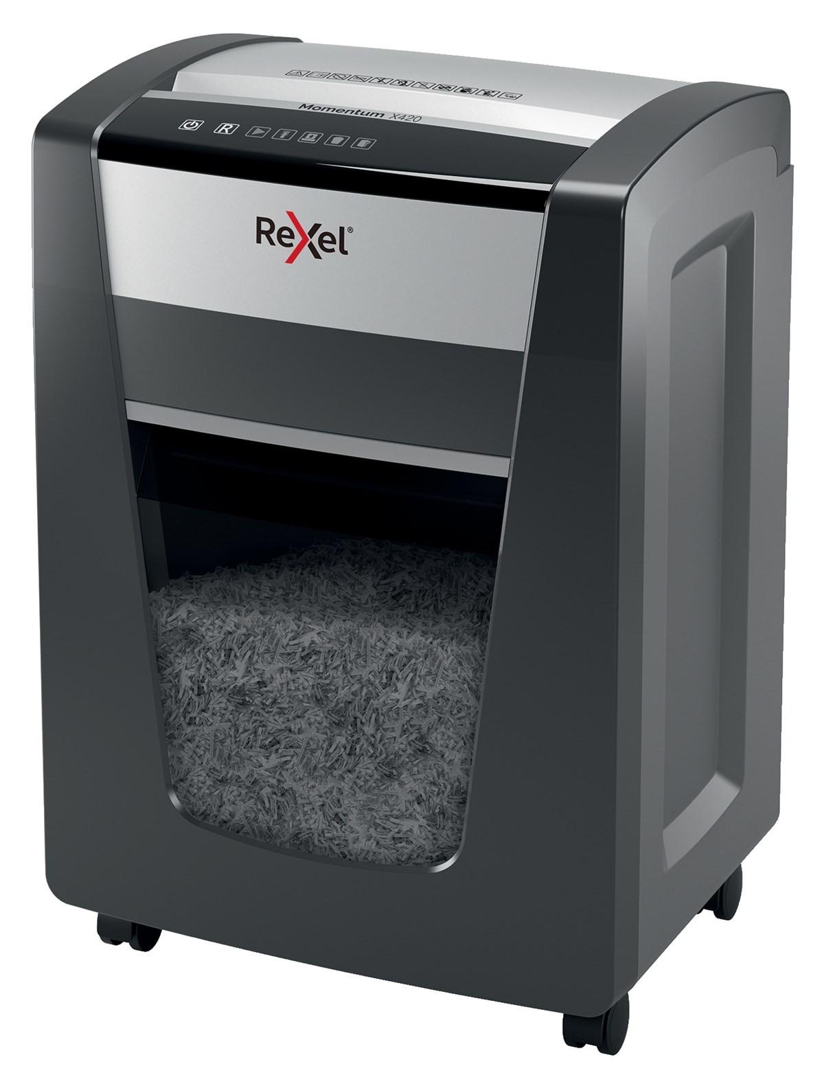 Kraftfull och tyst (58 dB) dokumentförstörare för mindre kontor med mycket att makulera. Antijam-teknologi - dokumentförstöraren stannar automatiskt och matar tillbaka papprena när för många matas in. Strimlar häftklammer, gem och plastkort. Inmatningsbredd 230 mm. Mått: 320x594x406 mm. Vi rekommenderar att man använder oljeark var tredje gång man tömmer dokumentförstörarens avfallsbehållare.