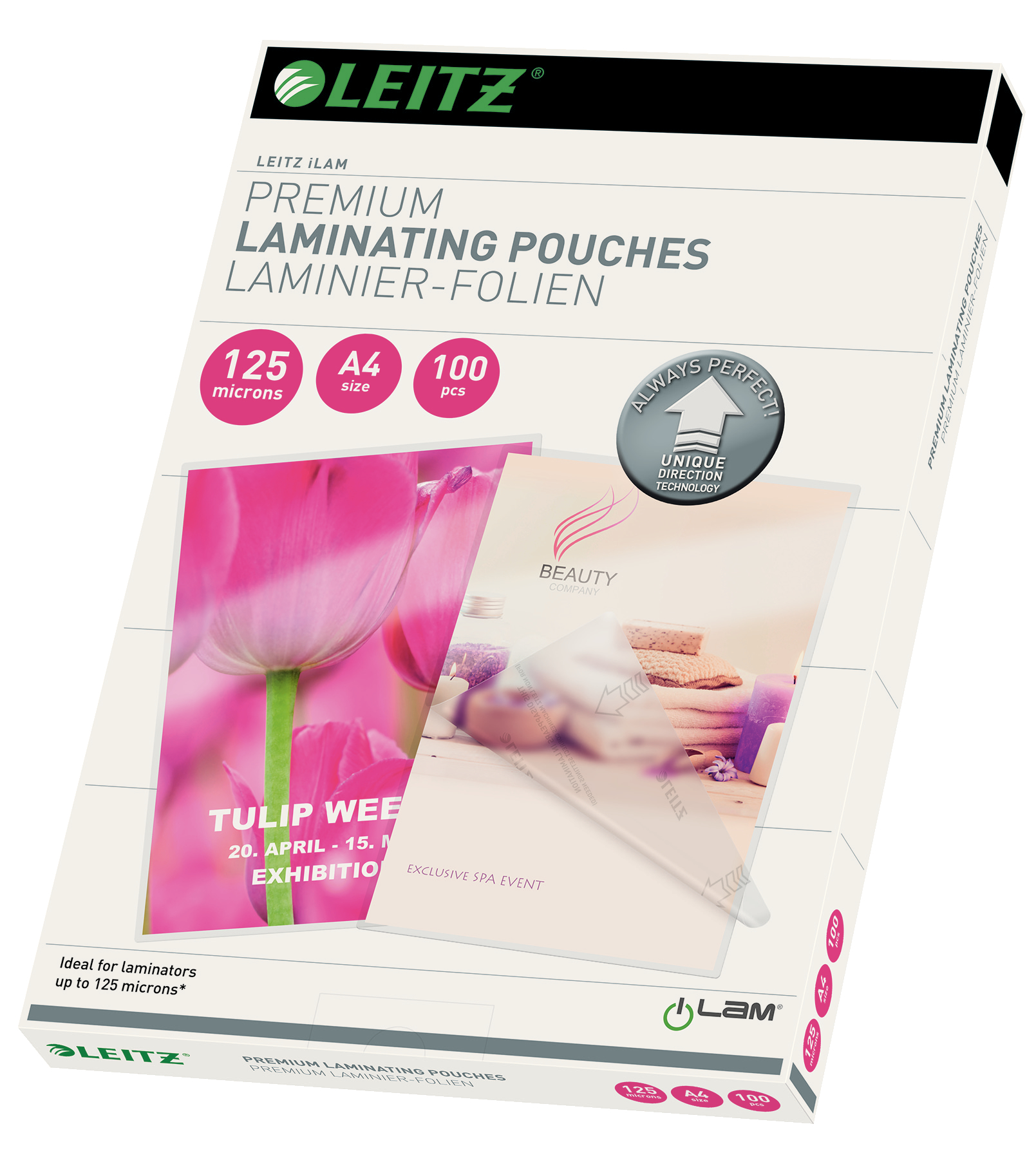 Laminat i bästa kvalitet som ger ett kraftig skydd mot smuts, vätska och fukt. Fickor med UDT-markering (Unique Direction Technology) för att du enkelt ska se i vilken riktning du ska mata in ditt dokument. Markeringarna försvinner när du laminerat. Blank yta som framhäver färgerna. Passar alla varmlamineringsmaskiner, inte bara ILam. 25 st/förp.