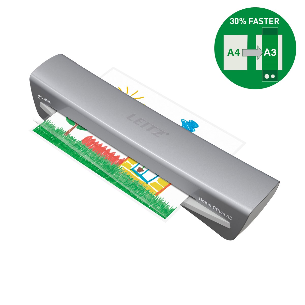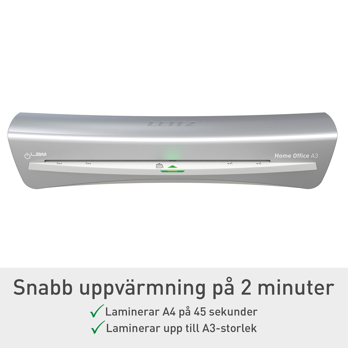 Den eleganta och kompakta lamineringsmaskinen Leitz iLAM Home Office kombinerar modern design med funktionalitet. Denna A3-laminator är utformad för bekvämlighet och har en snabb uppvärmningstid på 2 minuter och kan laminera ett 80-mikron A4-ark på bara 45 sekunder. Med ett enkelt knapptryck väljer du mellan tre olika ficktjocklekar för att passa olika behov, från vardagsdokument till viktiga papper som ska hålla länge. Den manuella anti-jam-frigöringsspaken säkerställer problemfri drift genom att snabbt lösa eventuella stopp. Den innovativa smarta status-LED:n gör användningen enklare med intuitiva ljus och ljud: rött under uppvärmning, grönt med en ljudsignal när den är redo och blinkande rött för standby-läge efter 15 minuters inaktivitet. Skydda dina dokument snabbt, effektivt och med stil.