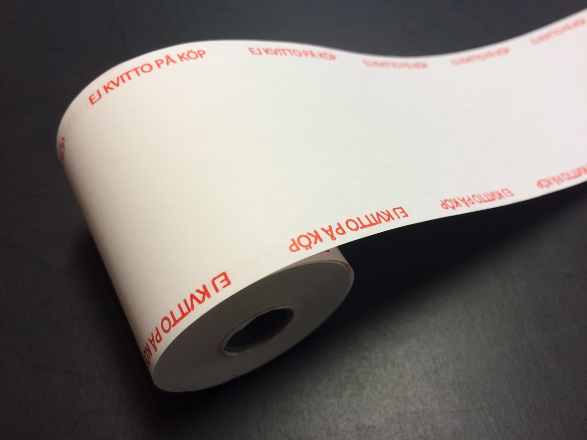 Uppfyller Skatteverkets föreskrifter för användning av kassaregister. För betalkortsterminaler och andra skrivare än kvittoskrivare om utskriften har ett innehåll som kan uppfattas som ett kvitto. 70 g termopapper.