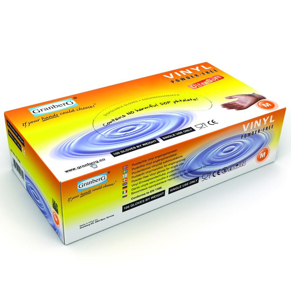 Engångshandskar Granberg 225 Vinyl puderfria klar 100/fp