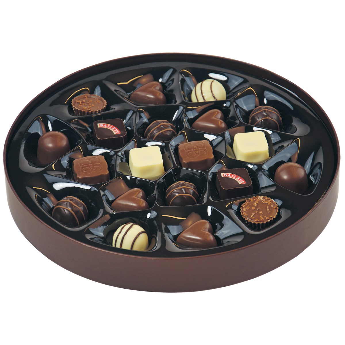 Utsökta praliner av vit, mjölk- och mörk choklad smaksatta med äkta Baileys Original Cream likör. 227 g.