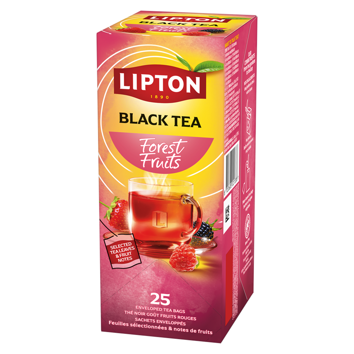 Lipton refresh forest fruits är en riktig sommarsmak med alla bär som den innehåller. Njut av en klunk med smak av jordgubb, skogsbär, björnbär, hallon och röda vinbär. Ett svart te samt att Liptons te förpackas inviduellt i lufttät förpackning som säkerställer kvalitet, arom, smakintensitet och friskhet.