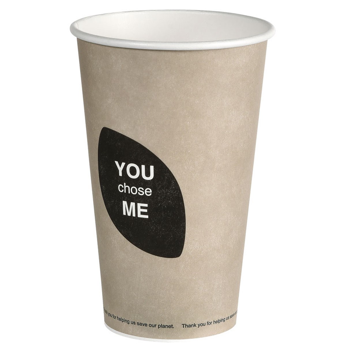 Bägare tillverkade av papper från kontrollerade plantager och belagda med växtbaserad PLA-bioplast. Biologiskt nedbrytbara