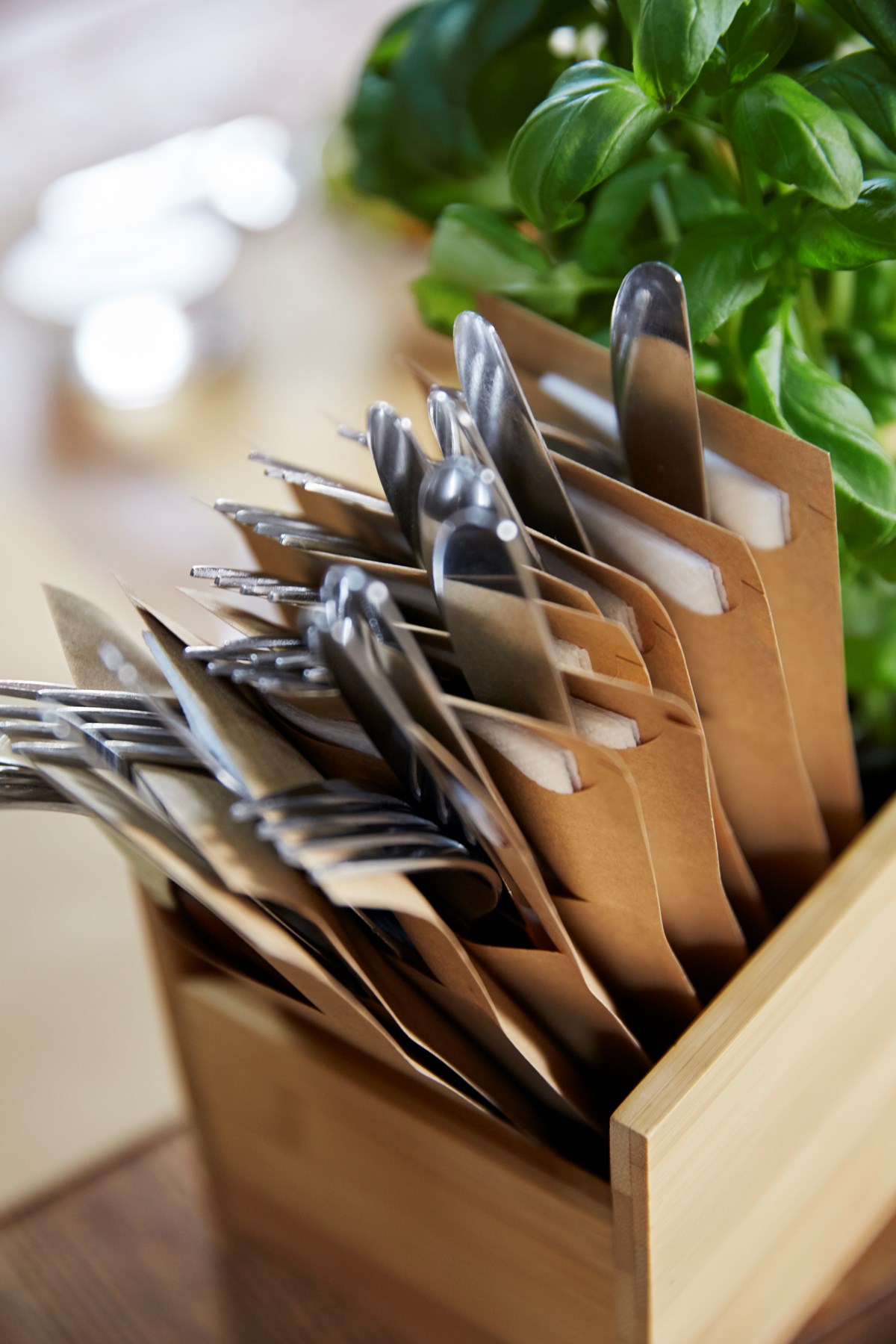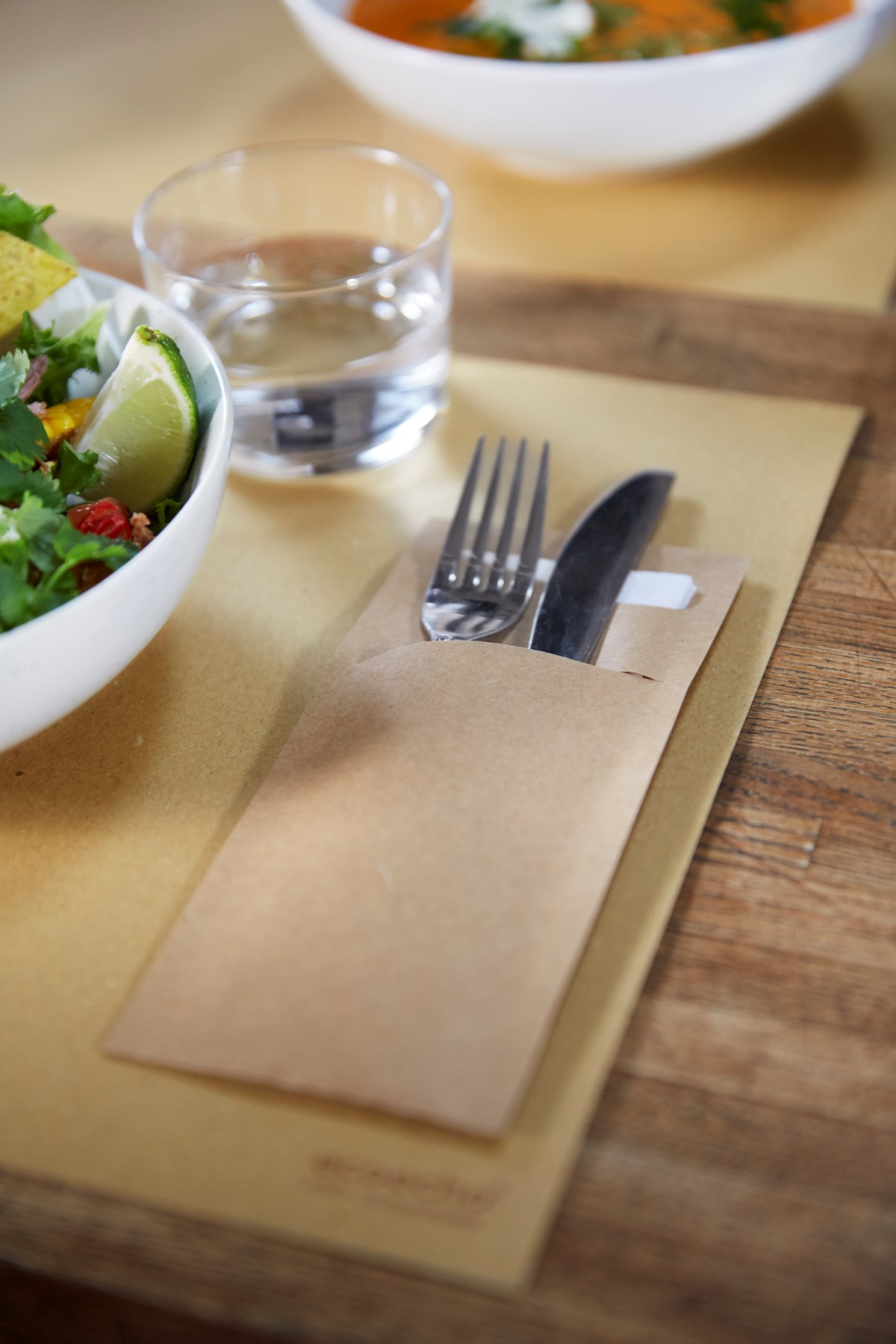 Hygienska och praktiska servettfickor. En snabb och enkel lösning för att begränsa hanteringen av både bestick och servetter. Inkl. en vikt tvålagers servett i storleken 33 x 33 cm. 100 st/förp., 400 st/kartong.