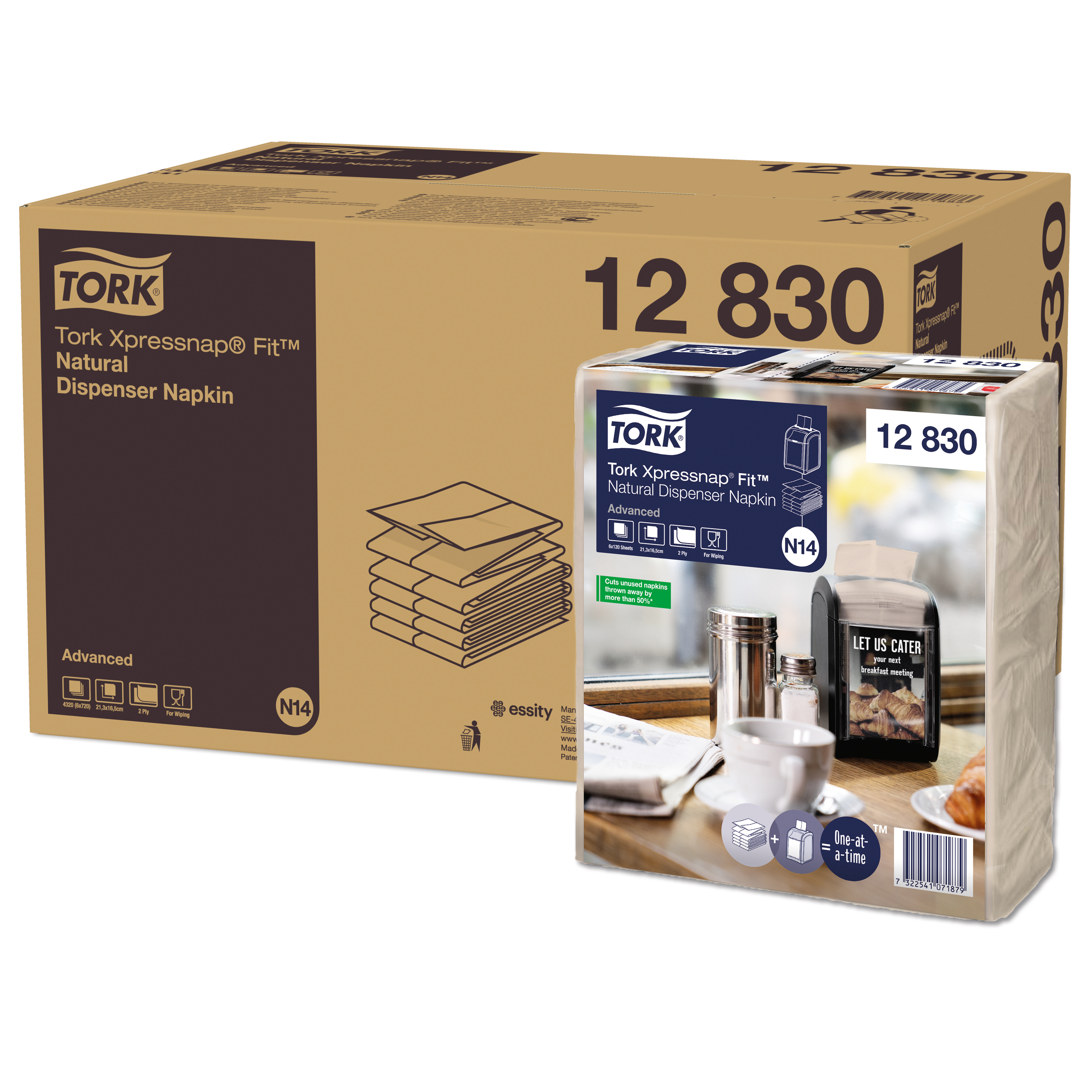 Kompakt, liggande dispenser som matar ut en servett i taget vilket minskar förbrukningen och avfallet. Utmärkt för diskar. Placera eget budskap i reklamrutan. Enkel påfyllning och refillindikator som visar när det är dags att fylla på nya servetter. Rymmer 324 st N14- servetter. Format: L32,6 x B12,1 x H14,3 cm.