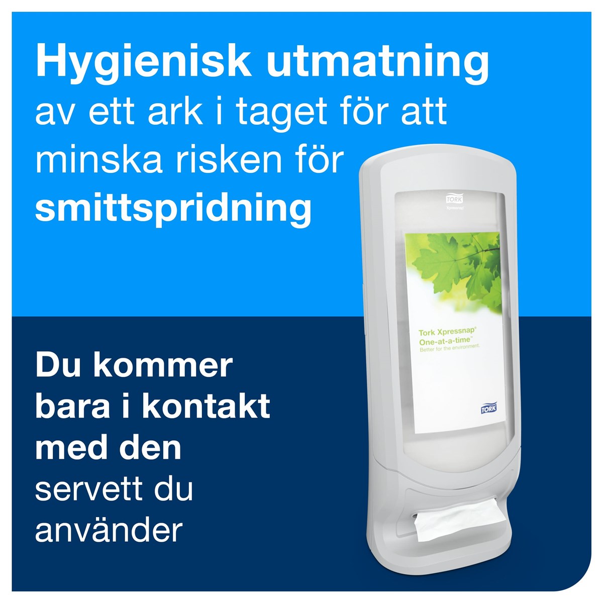 Stående design som spar plats på disken Enkel väggmontering Fönster för reklam eller personalinstruktioner Ett ark i taget för förbättrad hygien och minskad förbrukning Slitstark och enkel att rengöra