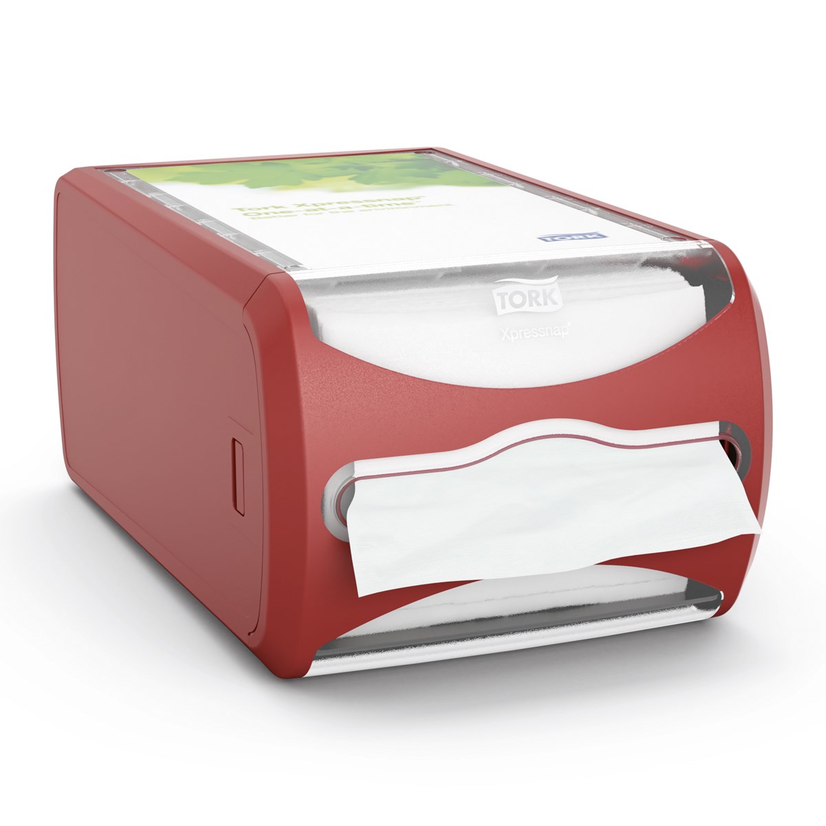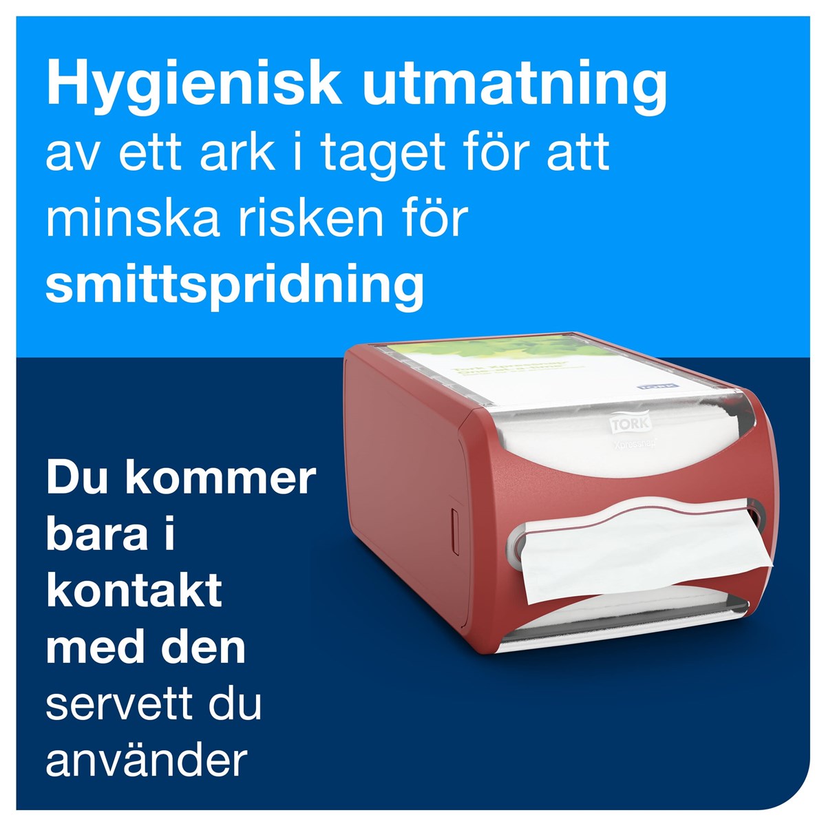 Liggande servettdispenser som kan staplas ovanpå varandra. Placera eget budskap i reklamrutan. Rymmer 550 st N4-servetter. Format: H14,5 x B19,1 x D30,5 cm.