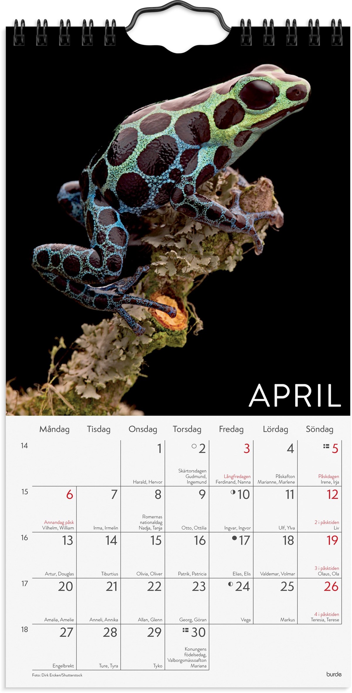 Bildkalender i litet format för din vägg. Kalendern innehåller bilder på vilda djur.