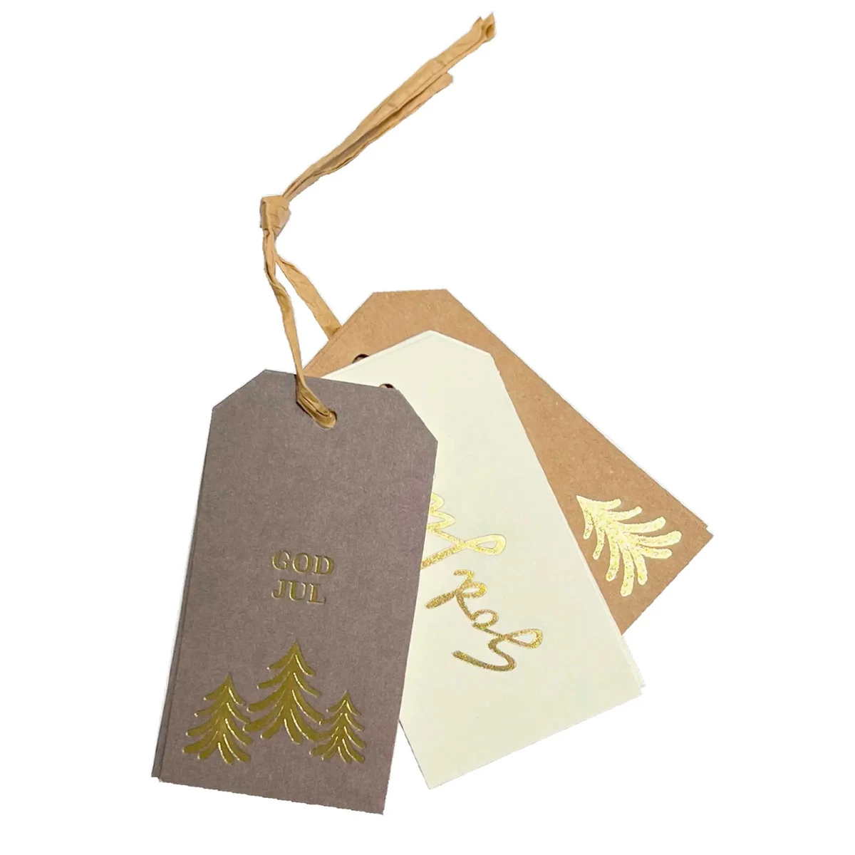 Hängetikett God Jul natur 50x90 mm 12/fp
