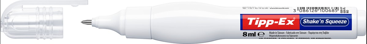 Korrigeringspenna av hög kvalitet i en klämbar pennliknande behållare. Enkelt att korrigera tack vare snabbtorkande vätska och flödesstyrning. Smal metallspets för preciserad korrigering. 8 ml.