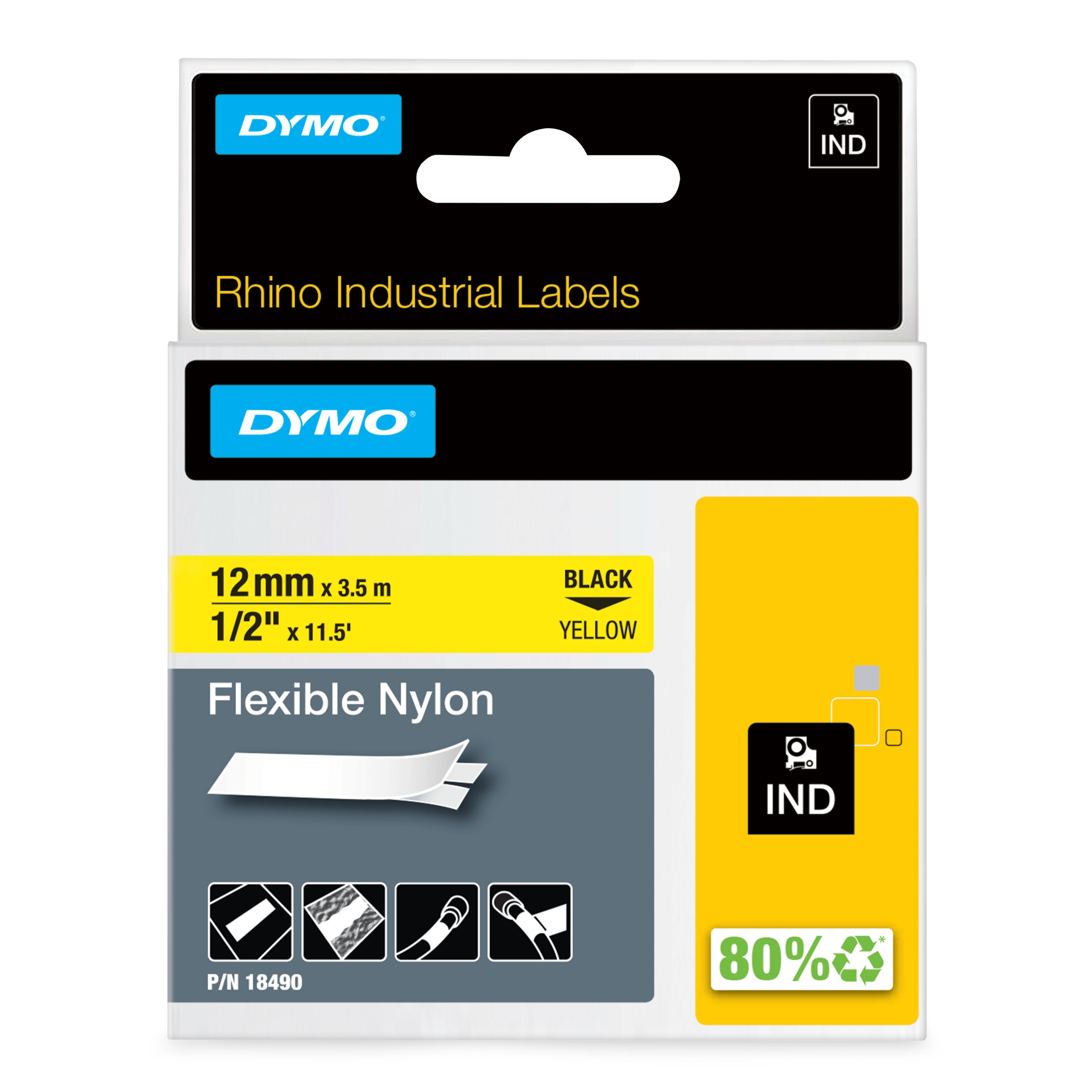 Flexibel nylon för böjda eller jämna ytor. Sladdar och kablar, anslutningspaneler, maskiner, utrustning, lådor m.m. Endast för användning med Rhino-maskiner. Längd: 3,5 m.