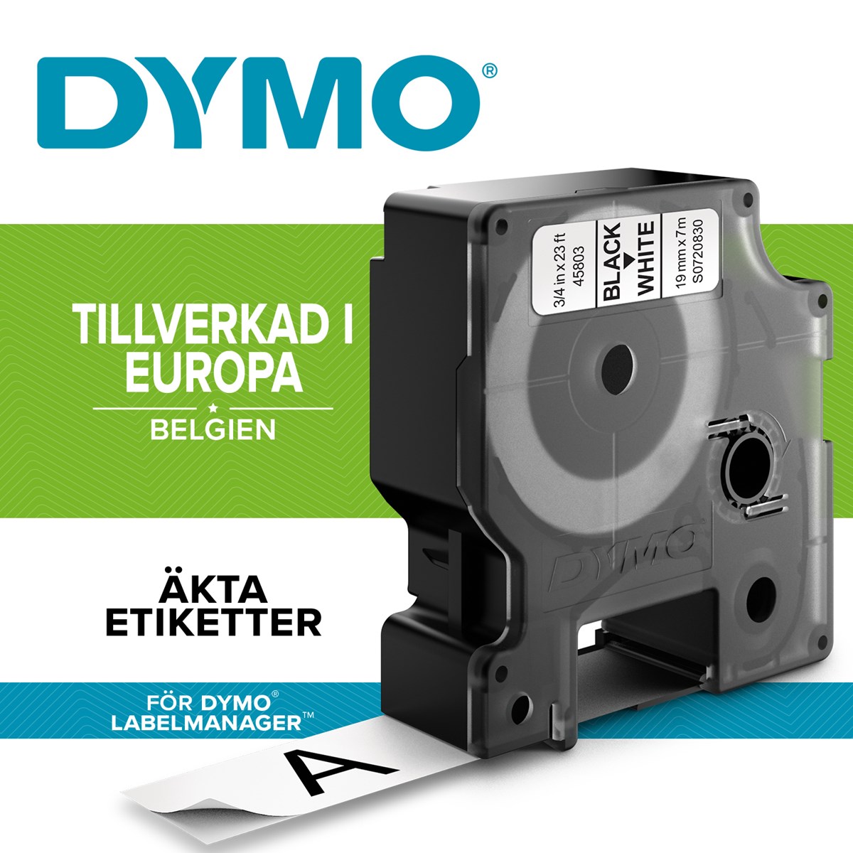 Märktejp Dymo D1 svart/vit 19mmx7m