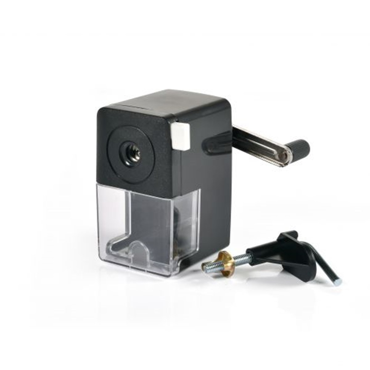 Pennvässare bordsstående med vev, Svart. Konstruktion i plast och metall som ger vikt för stabilitet. Uppsamlingsburk i plast samt bordstving och klämma medföljer.