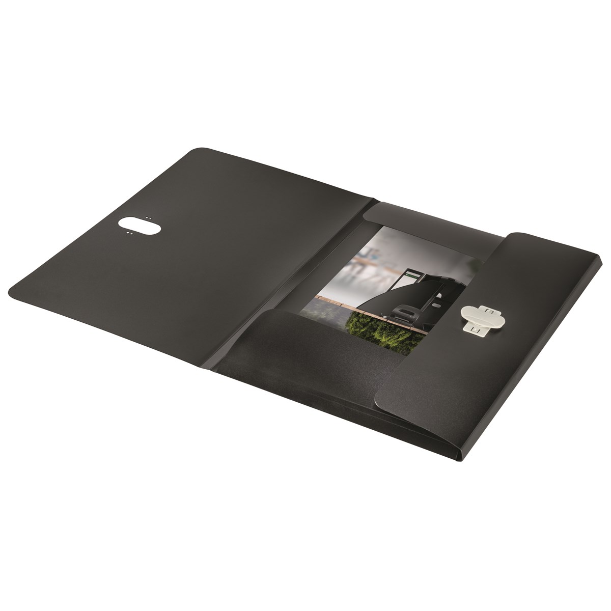För förvaring av dokument och lösa blad. Tillverkad av 100% återvunnet material och är 100% återvinningsbar. Säker, hållbar förslutning. Rymmer upp till 150 A4-ark. Svart.