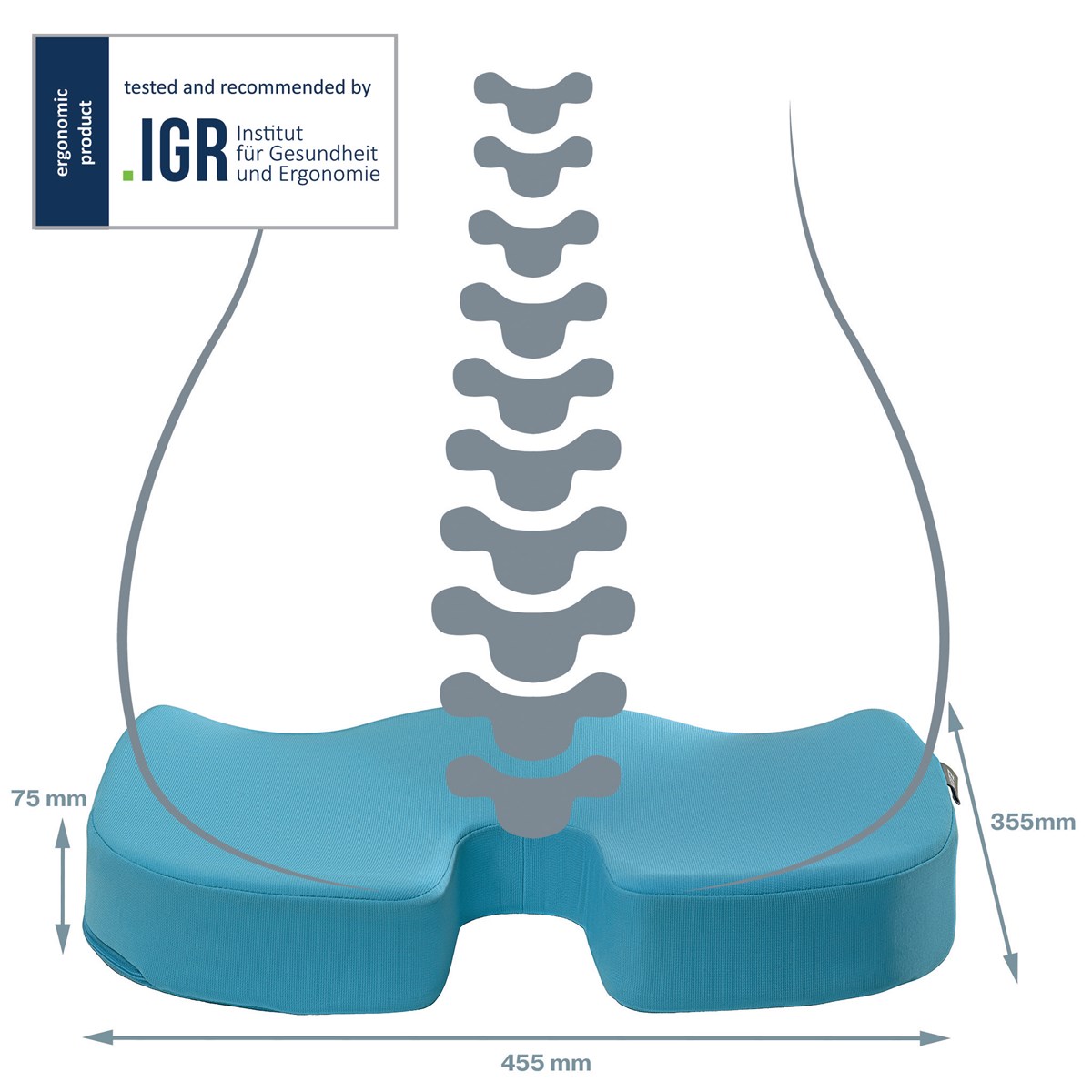 Ergonomiskt designad sittkudde för att maximera din bekvämlighet på vilken stol som helst Främjar en hälsosam hållning, förbättrar cirkulationen och lindrar ryggradstrycket Hjälper till att minska obehag, trötthet och stelhet Idealisk att använda hemma, på kontoret eller i bilen Sittkuddens fodral kan tas av och handtvättas