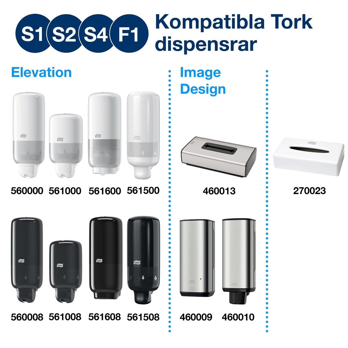 Idealisk för miljöer där vatten inte finns tillgängligt Kompatibel med både manuella och sensordrivna dispensrar Robust och stadig design Enkel att förflytta Kompatibel med Tork S1, S2, S4 och F1 refiller och dispensrar för hudvårdsprodukter