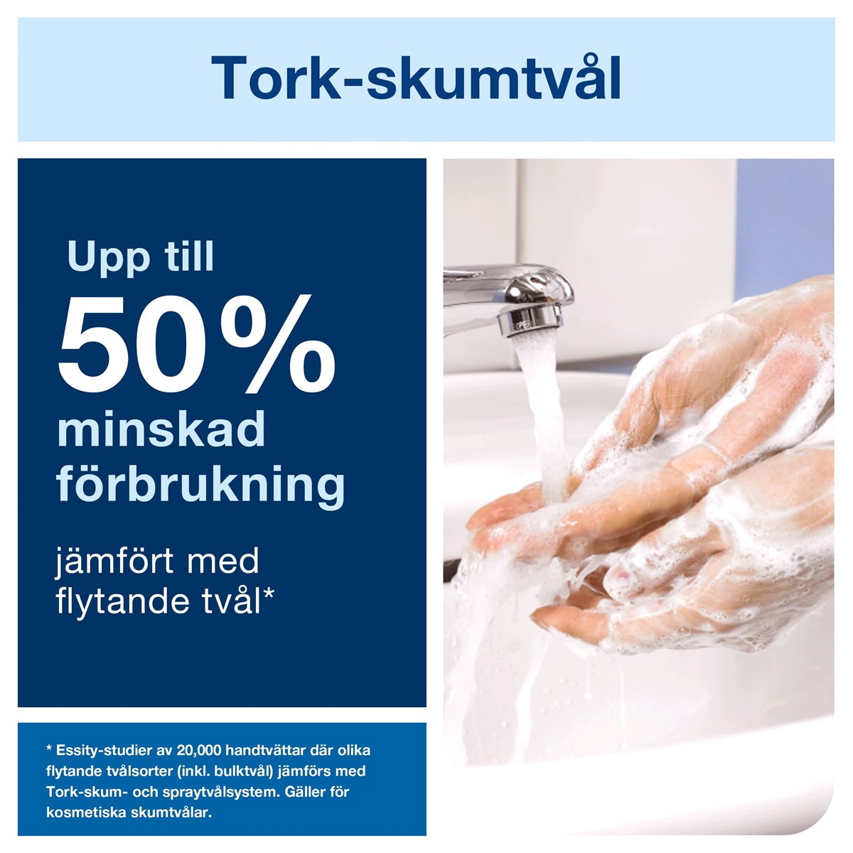 Beröringsfri, sensorstyrd hållare i rostfritt stål för Tork skumtvål. Hög kapacitet, en skumtvålsflaska ger 2500 doseringar. Hölje i lätt borstat rostfritt stål med skydd mot fingeravtryck ser snygg ut och förblir ren. Fönster på båda sidor för att man lätt ska kunna se när refillflaskan behöver bytas ut. Dokumenterat enkel att använda både för användare och städpersonal av Svenska Reumatikerförbundet. Mått: H27,8xB11,6xD13 cm. Drivs med 4 st LR14/typ C-batterier.
