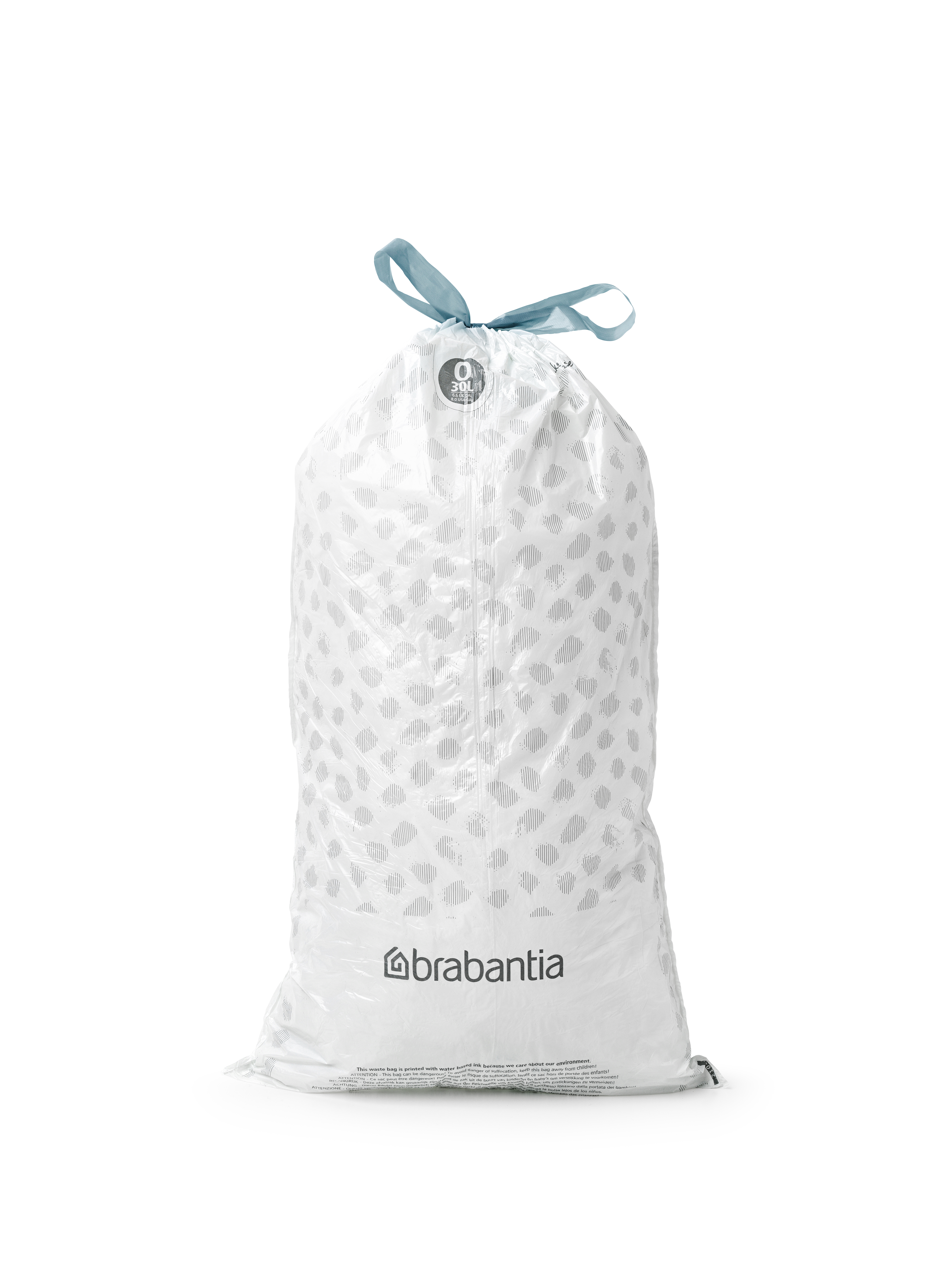 Perfekt passform – skräddarsydd för Brabantias avfallshinkar. Varje avfallsbehållare från Brabantia har en kodning i locket. Matcha kodningen i locket med påsar av samma kod så passar påsen perfekt. Tack vare ett praktiskt knytband som dessutom fungerar som bärsnöre går det snabbt och enkelt att byta påsen. Kanten blir i princip osynlig och sitter alltid säkert på plats i din avfallshink. 40 påsar/förp.