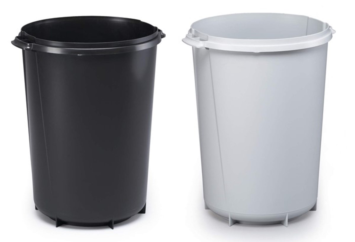 Rund tunna av plast för avfall och återvinning. Praktisk även för förvaring och transport av råmaterial inom handel och industri. Med bärhandtag för enkel transport. Höjd 52 cm, diameter 42,5 cm. Volym: 40 liter. Lock köps separat.