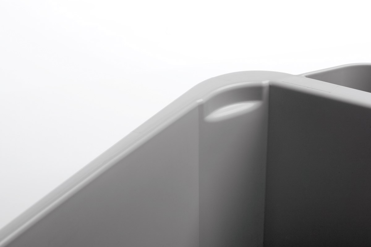 Rektangulär, 60-liters tunna av polypropen med ergonomiskt bärhandtag. Praktisk även för förvaring och transport av råmaterial inom handel och industri. Greppvänlig undersida förenklar lyft och tömning. Livsmedelsgodkänd. Klämspår i hörnen gör att sopsäcken sitter säkert. Mått (H x B x D): 600 x 590 x 282 mm. Lock köps separat.