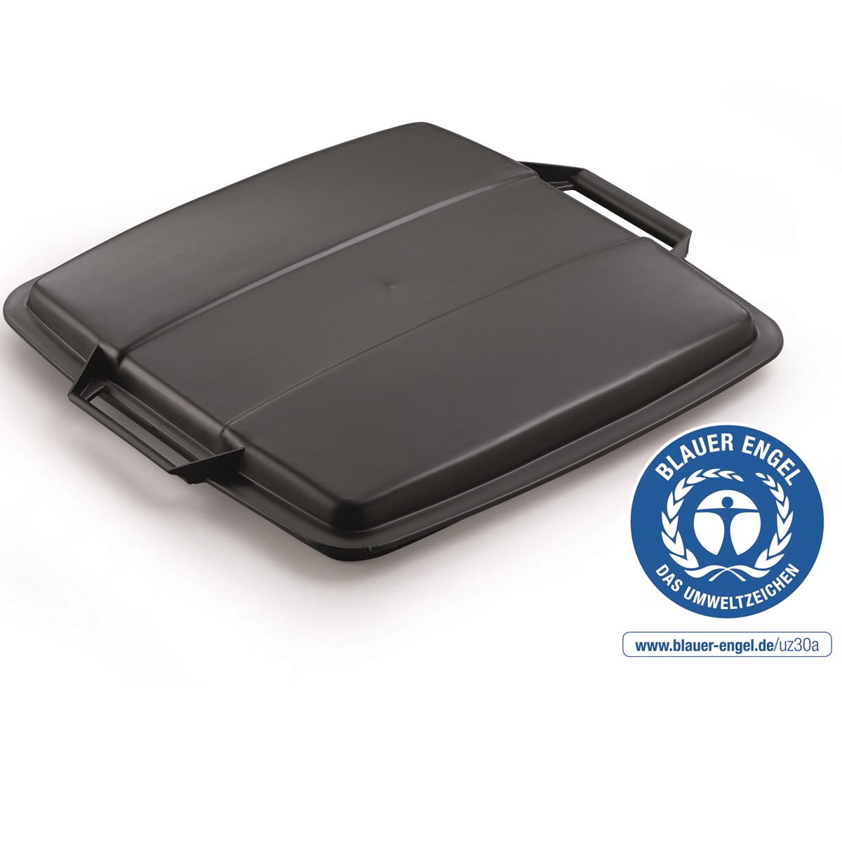 Plasten som detta lock är tillverkat av, består av minst 80% insamlad återvunnen plast, samtidigt som den har lång livslängd och är fullt återvinningsbar. Användningsområdena för DURABIN-serien är många - som stor papperskorg, återvinningssortering, korg för upphittade kläder etc.