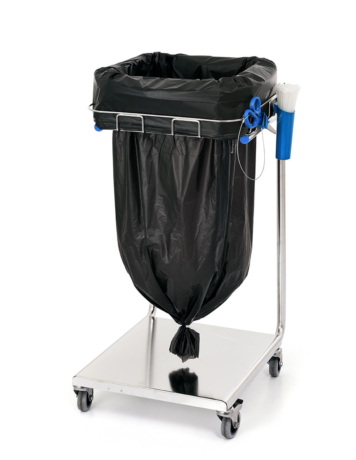 Ett golvställ för en mer hygienisk hantering då byte och förslutning sker från säckens utsida – ingen kontakt med avfallet. Låsbara hjul. Mått H x B x D: 955 x 495 x 555 mm. Inkastöppning: 320 x 280 mm. Laddas med säckkassett Longopac Midi.