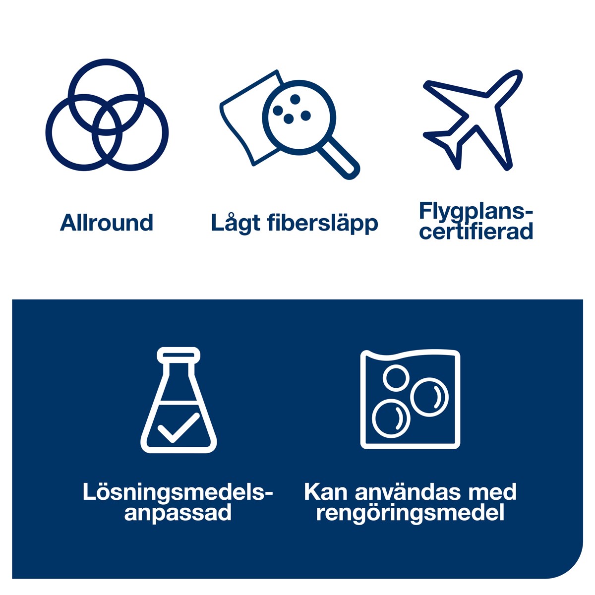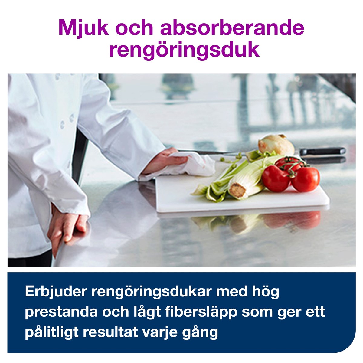 Tålig och slitstark rengöringsduk av non-woven-material med hög absorptionsförmåga. Hygienisk ersättare till disktrasan. Godkänd för livsmedelskontakt. Mått : 38,5 x 30 cm. 50 vita dukar/förp. 400 dukar/kartong.
