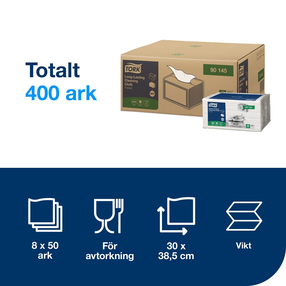 Rengöringsduk Tork Slitstark W8 50/fp