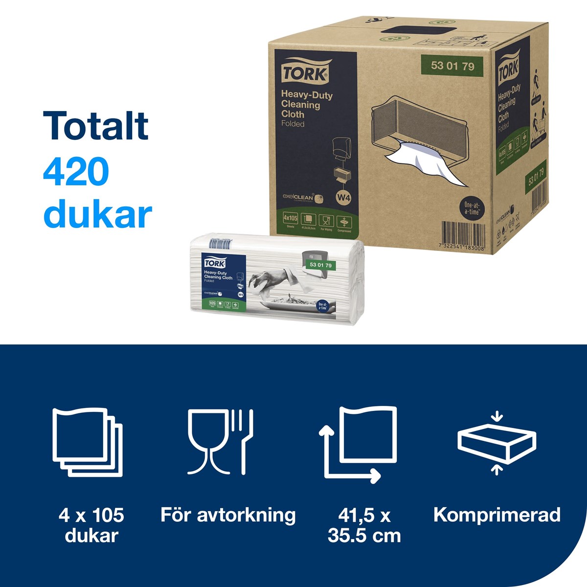 Rengöringsduk Tork W4 Kraftig vit 105/fp